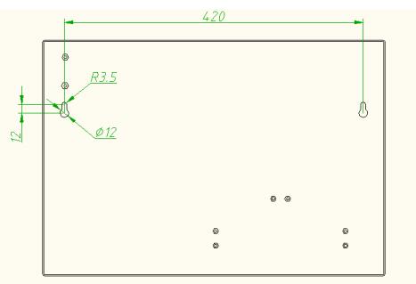 傳輸裝置采用壁掛式安裝,其安裝尺寸如圖 2-1 所示,單位 mm。