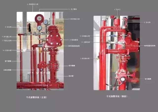 保護區域出現火警時,探測系統首發動作,打開預作用雨淋閥以及系統中用于排氣的電磁閥(出口接排氣閥),此時系統開始充水并排氣,從而轉變為濕式系統,如果水勢繼續發展,閉式噴頭開啟噴水,進行滅火。這樣就克服了雨淋系統會因探測系統誤動作而導致誤噴的缺陷。