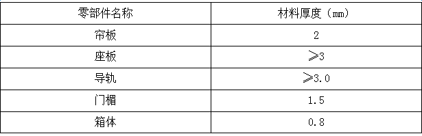 3.1簾板、導軌、門楣、卷軸等部位的表面不允許有裂紋、壓坑及較明顯的凹凸、錘痕、毛刺、空洞等缺陷。