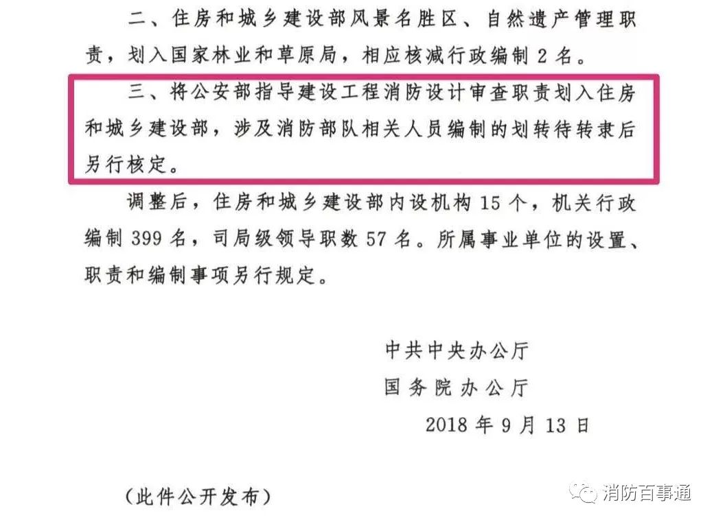 此前中央辦公廳曾正式發文,將公安部指導建設工程消防設計審查職責劃入住房和城鄉建設部,涉及消防部隊相關人員編制的劃轉待轉隸后另行核定。