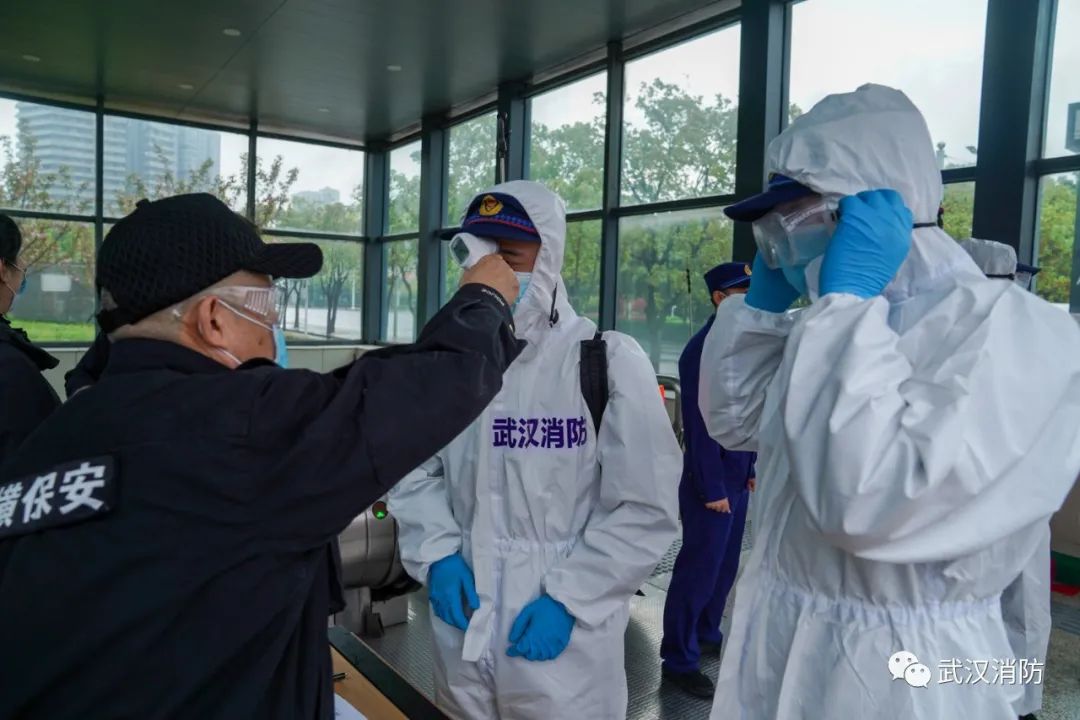 按照疫情期間地鐵公司的管理要求,消防員們進行體溫測量并登記