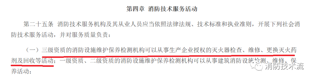 這與《消防技術服務機構從業條件》對應,因從業條件并沒有對滅火器維修機構作出規定。