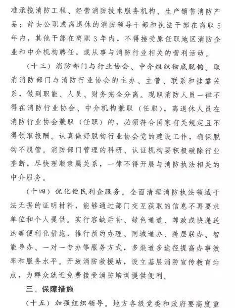 《意見》還從加強組織領導、強化協同監管、完善法律法規、抓好督促落實4個方面提出了深化消防執法改革的保障措施。