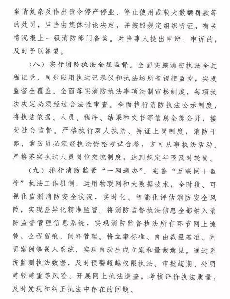 在規范消防執法行為方面,全面實施消防執法全過程記錄、法制審核、執法公示制度,嚴格限制處罰自由裁量權,嚴格執行雙人執法、持證上崗、崗位交流制度。將消防監督執法信息全部納入消防監督管理信息系統,實現消防監督執法所有環節網上流轉、全程留痕、閉環管理。