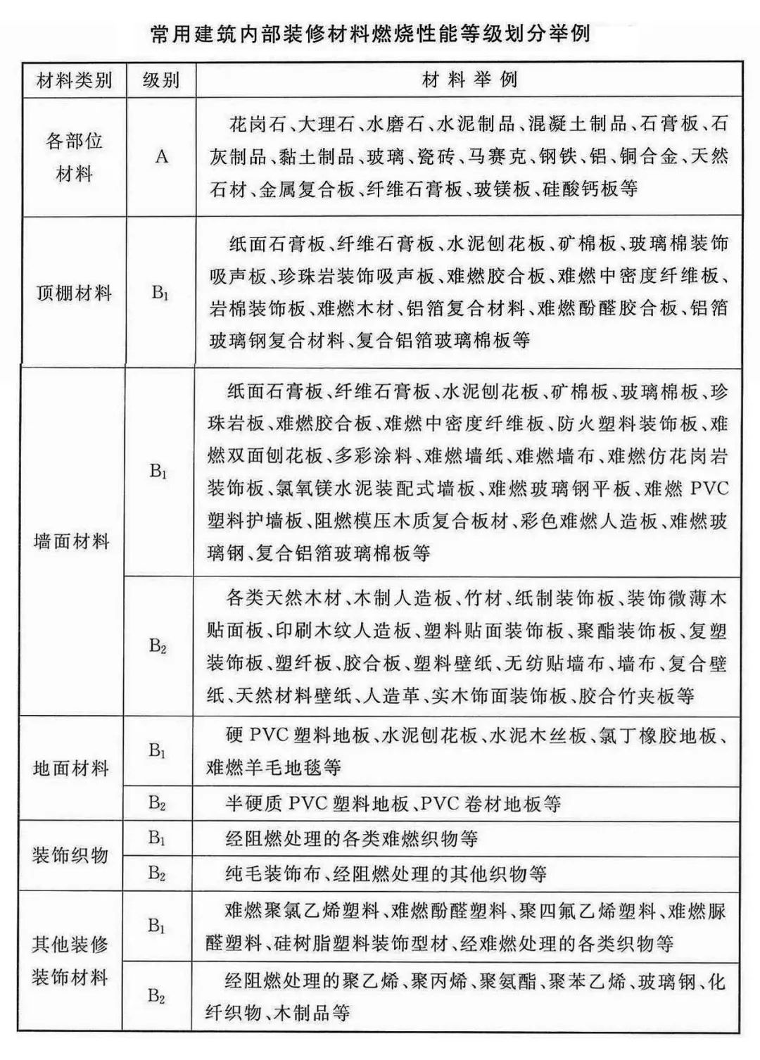 建筑用途、場所、部位不同,所使用裝修材料的火災(zāi)危險性不同,對裝修材料的燃燒性能要求也不同。