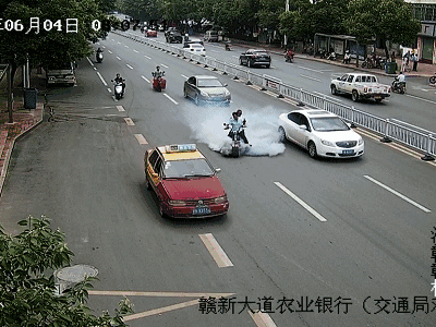 江西贛州一輛行駛中的電動車,