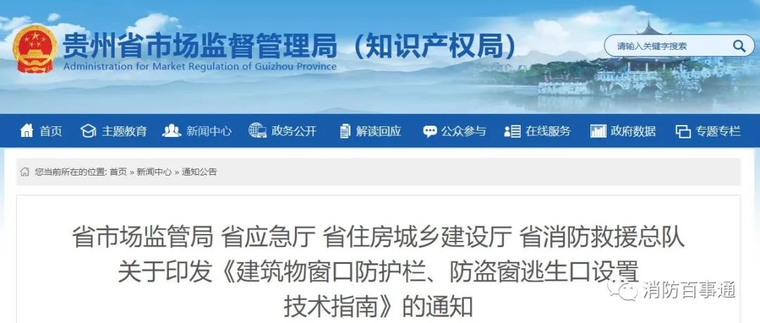 為貫徹落實《省安全生產委員會 省消防安全委員會關于印發〈貴州省貫徹落實國務院安委辦消防安全工作督導反饋意見整改方案〉的通知》(黔安〔2020〕10號)的部署和要求,規范建筑物窗口防護欄、防盜窗逃生口設置技術要求,我們組織編制了《建筑物窗口防護欄、防盜窗逃生口設置技術指南》。現將該技術指南印發給你們,請認真貫徹執行。