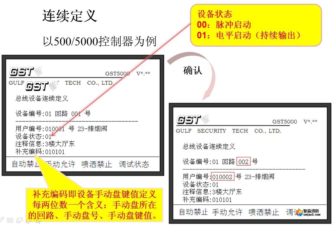 例如:&&&***03+&&&***02=&&&***1300 含義:任一煙感或溫感報火警,將聯(lián)動啟動前三位用戶編碼與其相同的所有訊響器,延時時