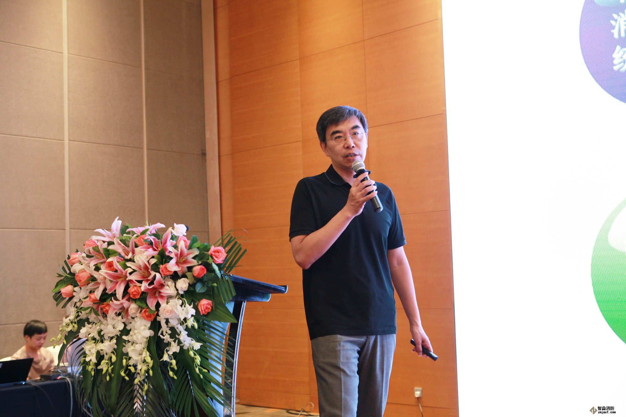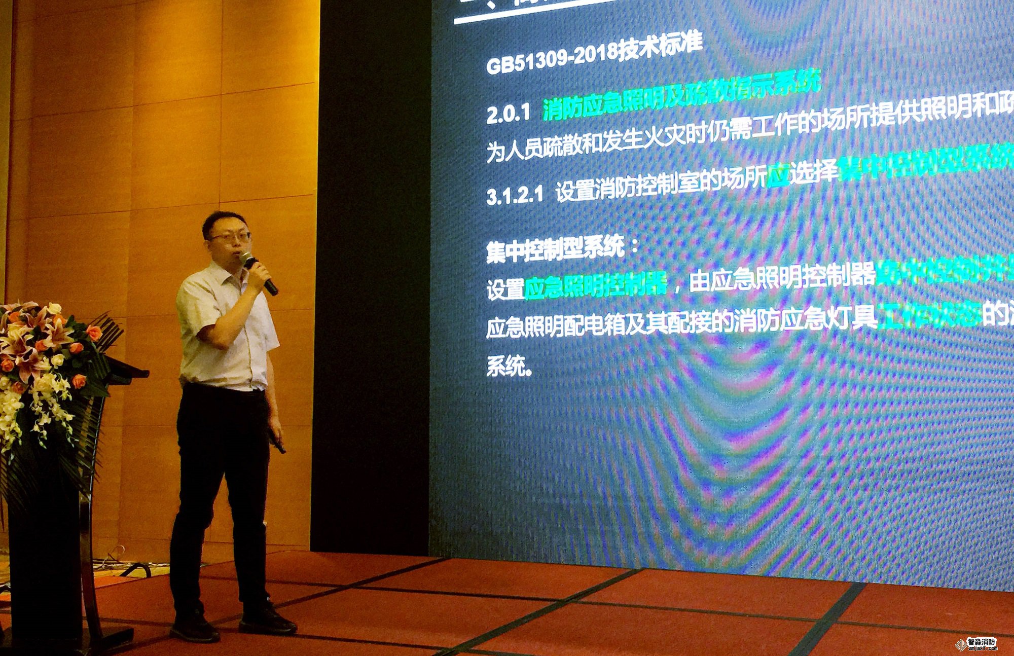 北區售前技術經理金龍介紹了二線制火災報警系統及消防應急照明和疏散指示系統