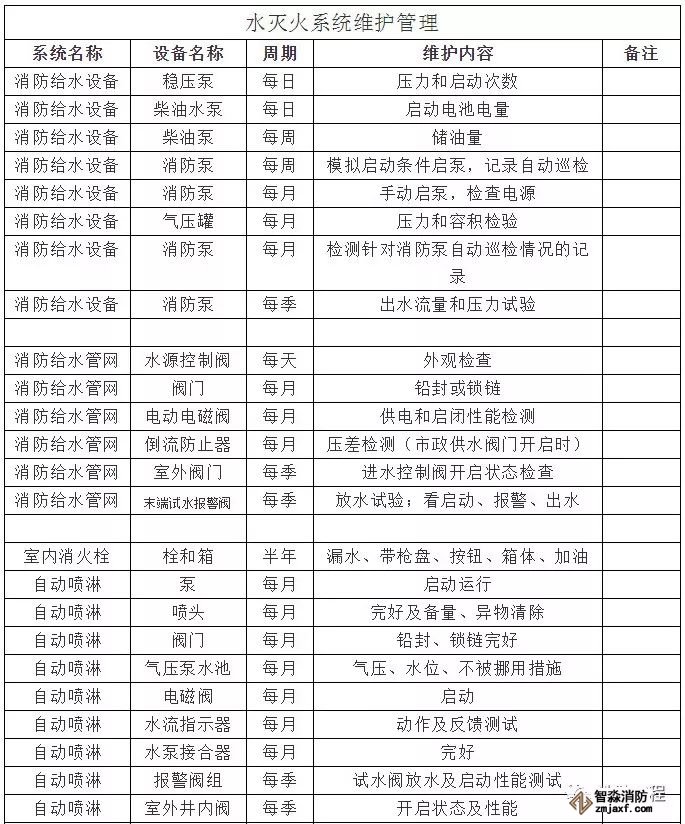 本頁關鍵詞:消防水滅火系統維護保養管理周期表格