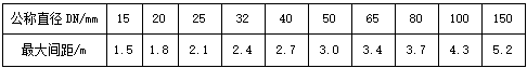 (1)管道固定牢靠,管道支架、吊架間的最大間距應符合下表的規定:
